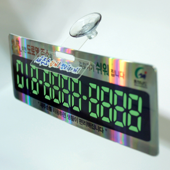 투명고리의 탄성을 이용하여 자연스러운 각도를 형성하여 차량 부착시 운전자의 시야에 정확하게 광고가 한눈에 들어오는 제품
